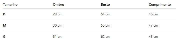 Comprimento da Manga (cm): Sem mangas
